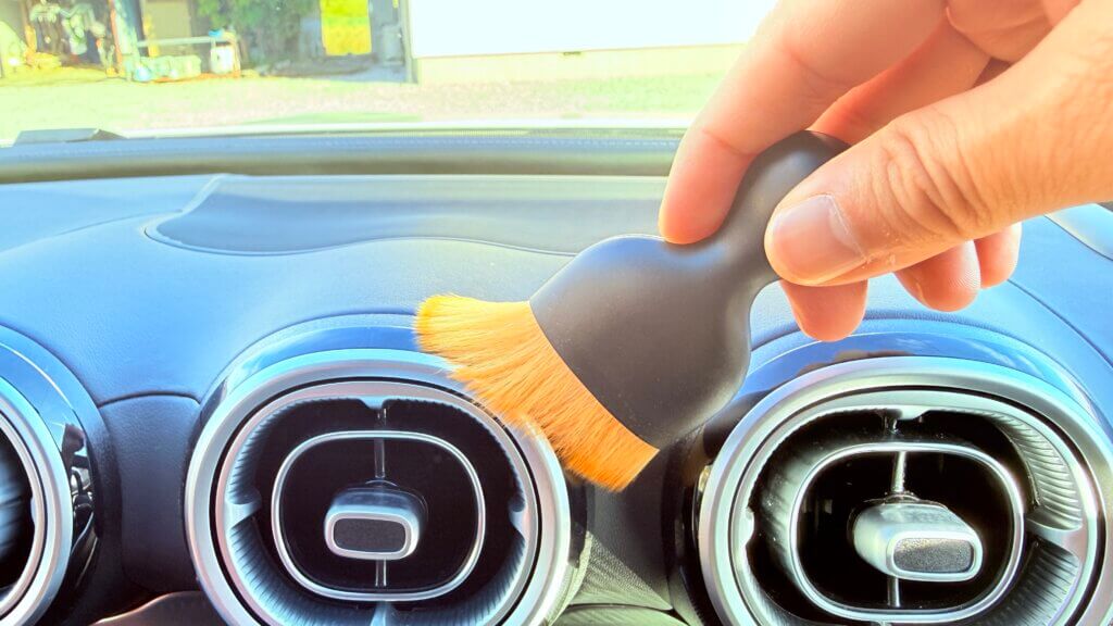 柔らかい毛がしなやかに使えるので、内装のやや入り組んだ部分やパーツ同士が重なって指が入らない部分にも届きます。