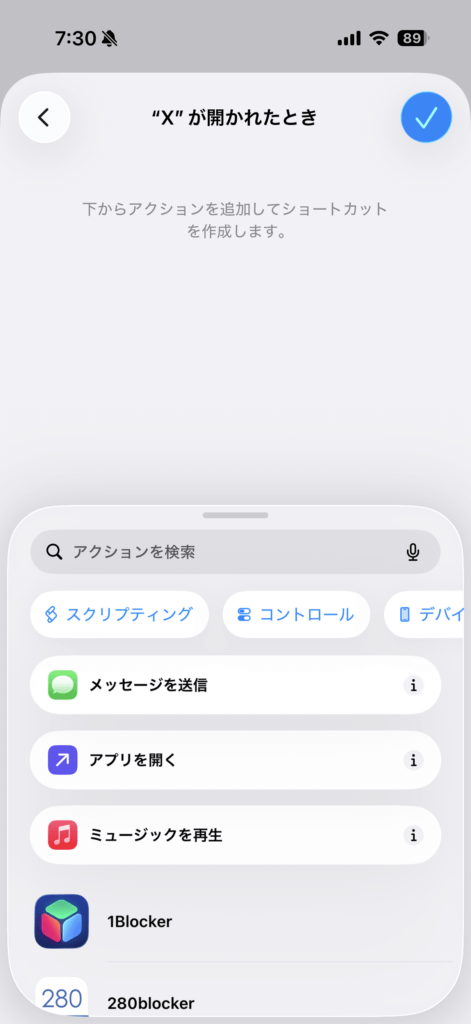 そこで、Apple純正アプリの「ショートカット」を使う方法を採用しました。