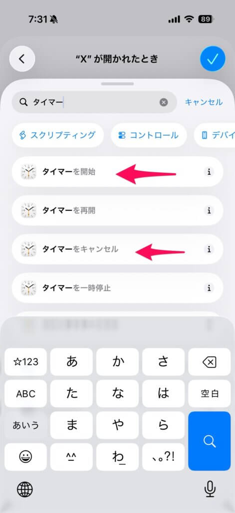 ちなみに後で「タイマーをキャンセル」も使います。